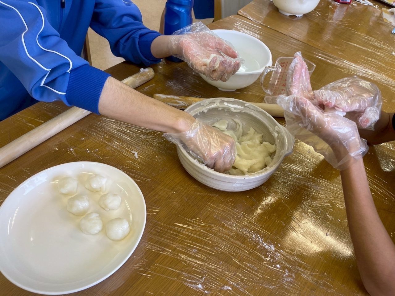 一足先にケーキ作りを終えたウルトラマン、チョコチームはお月見ということでお団子づくりを