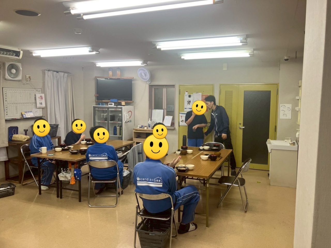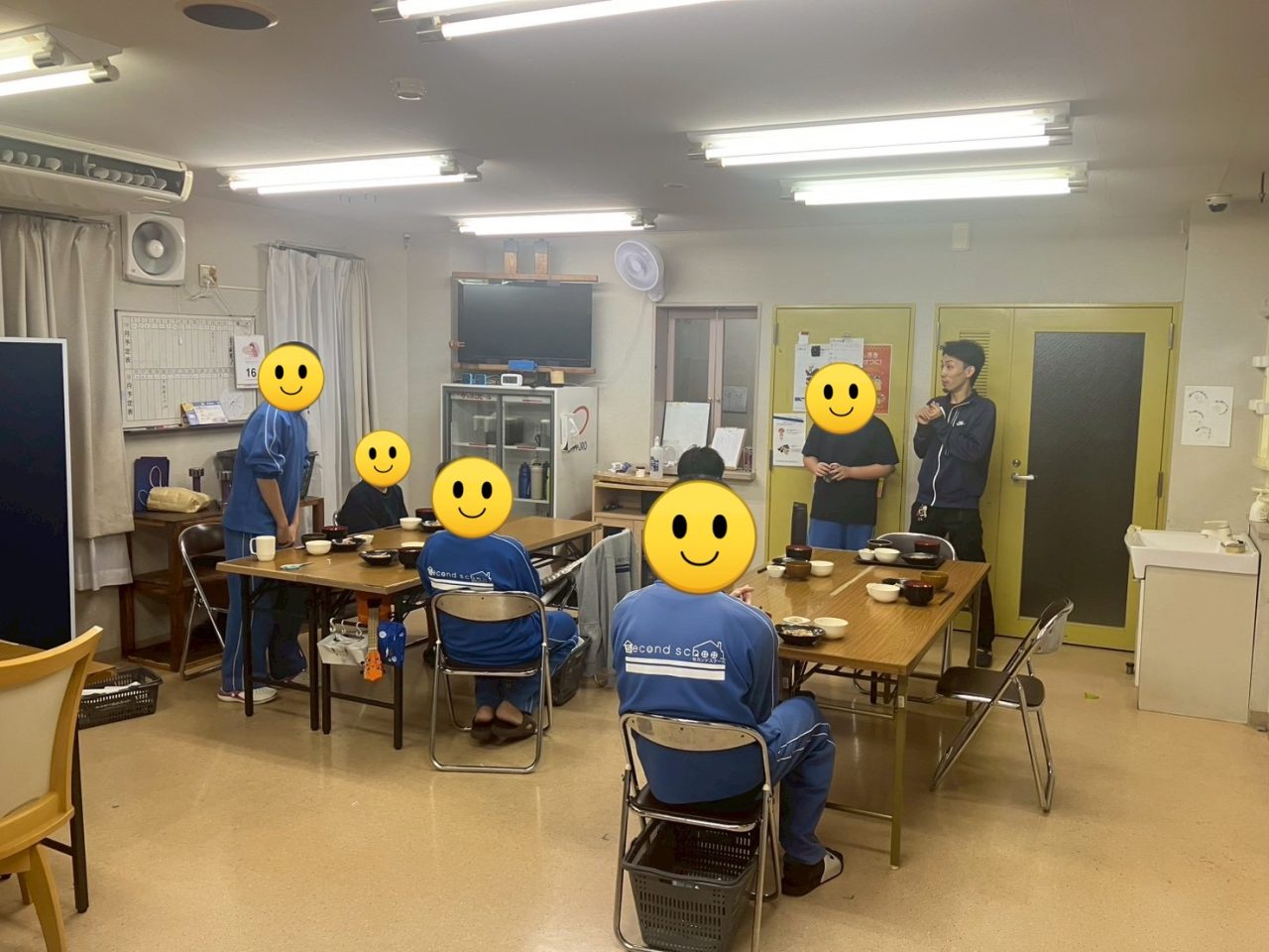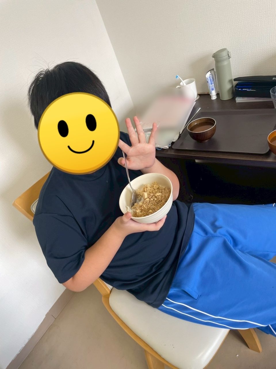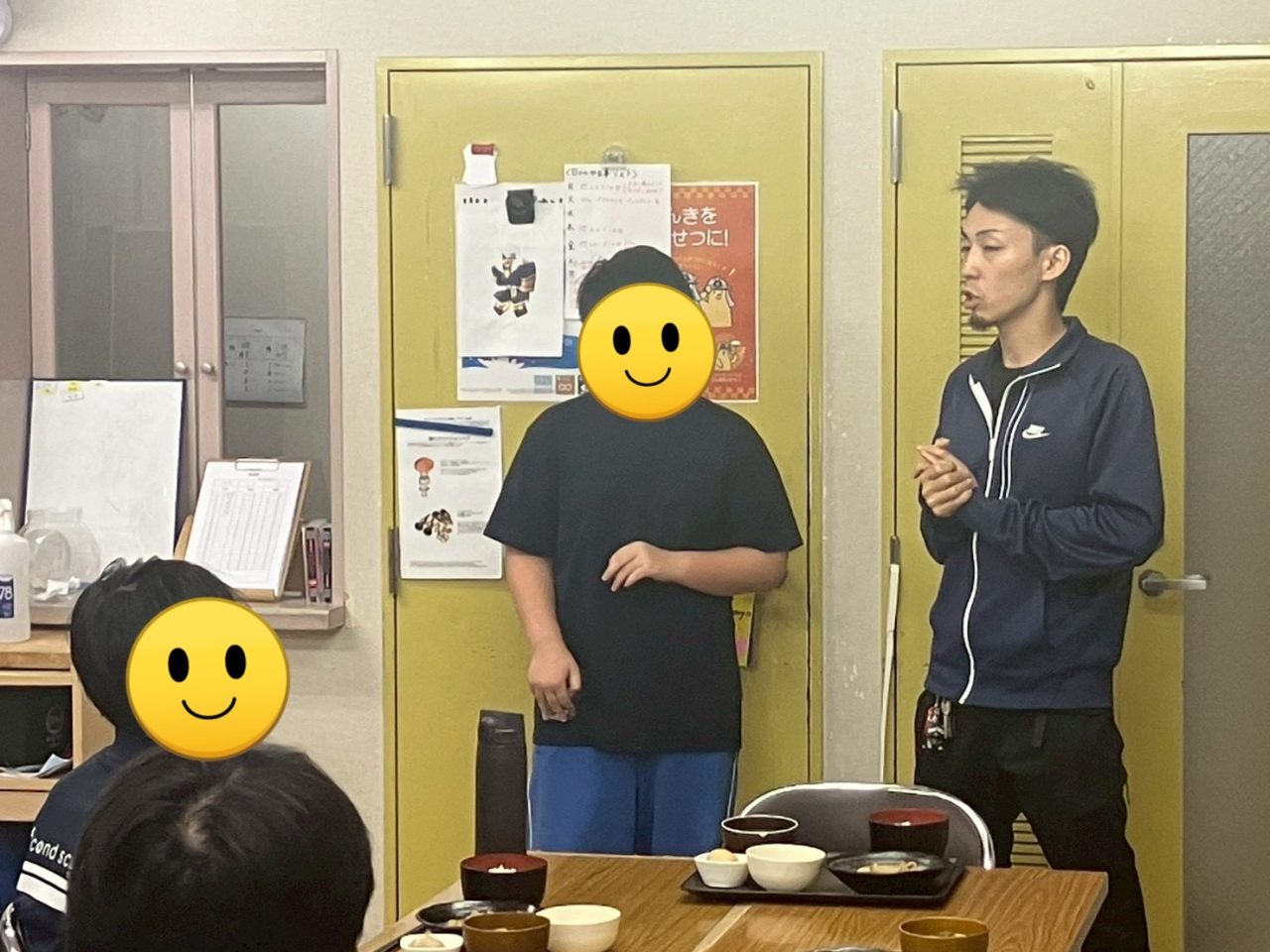 夕食中もスタッフをちらちら見ながら周りの生徒と話していました。