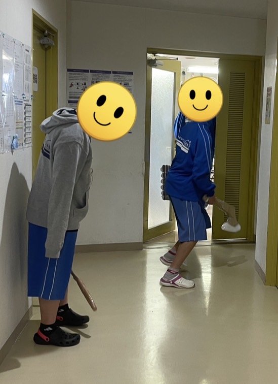 学習の休憩時間には廊下で、お兄ちゃんたちのちゃんばら遊びを見ていたので混ざらないのか聞くと、
