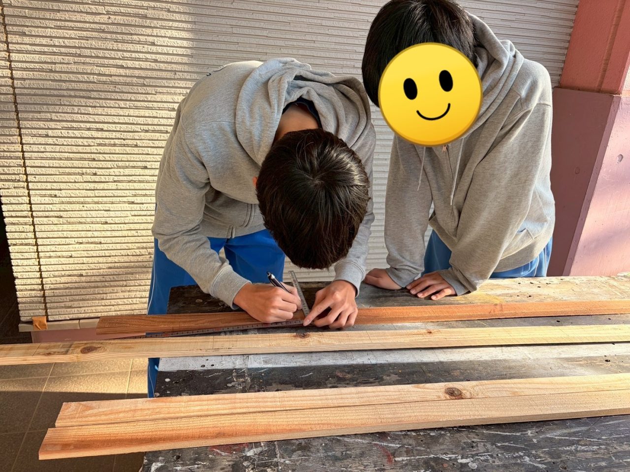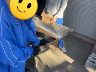 生徒たちは主に手ノコを使いスタッフは主に丸ノコを使い一つ一つ丁寧に