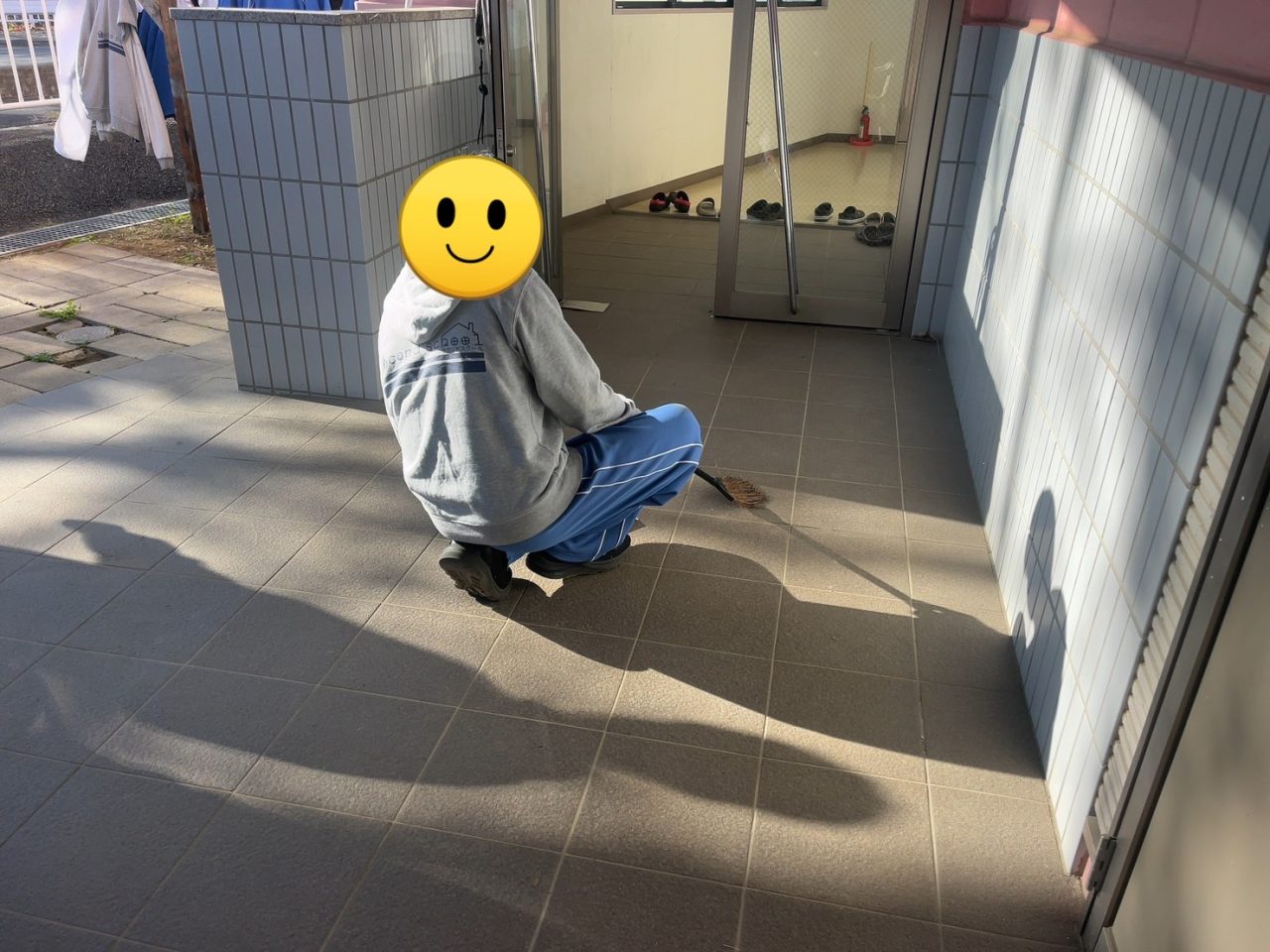 作業終了後に木くずがたくさん落ちているのでほうきで掃除をしました。