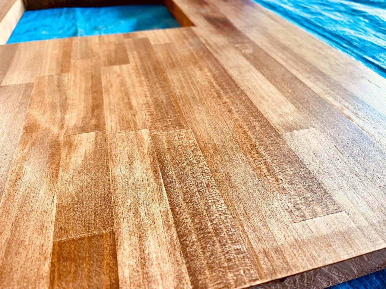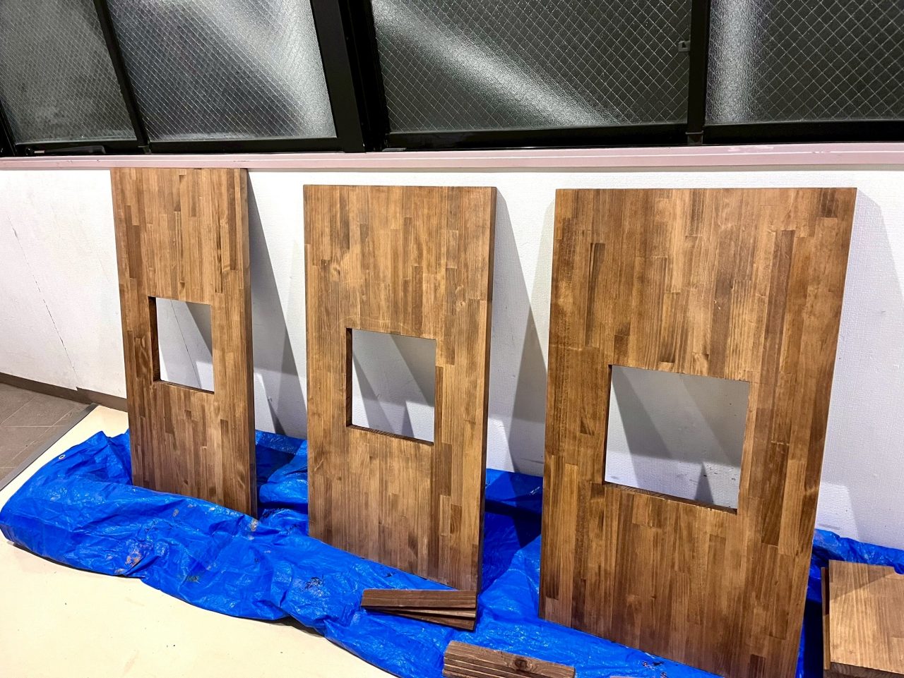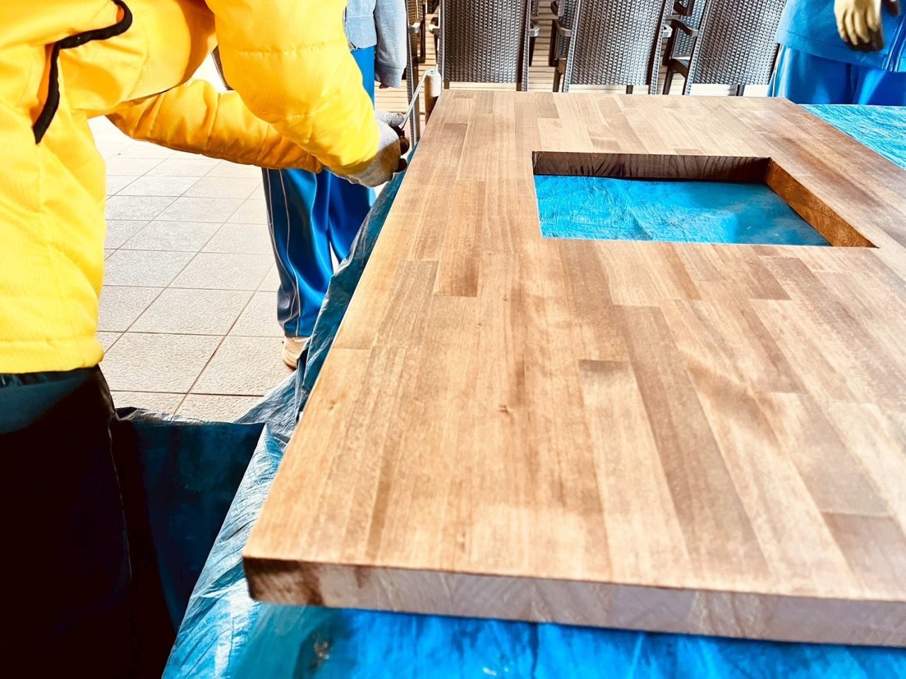 この日は、前回の続きで天板をローラ―を使って塗りました。
