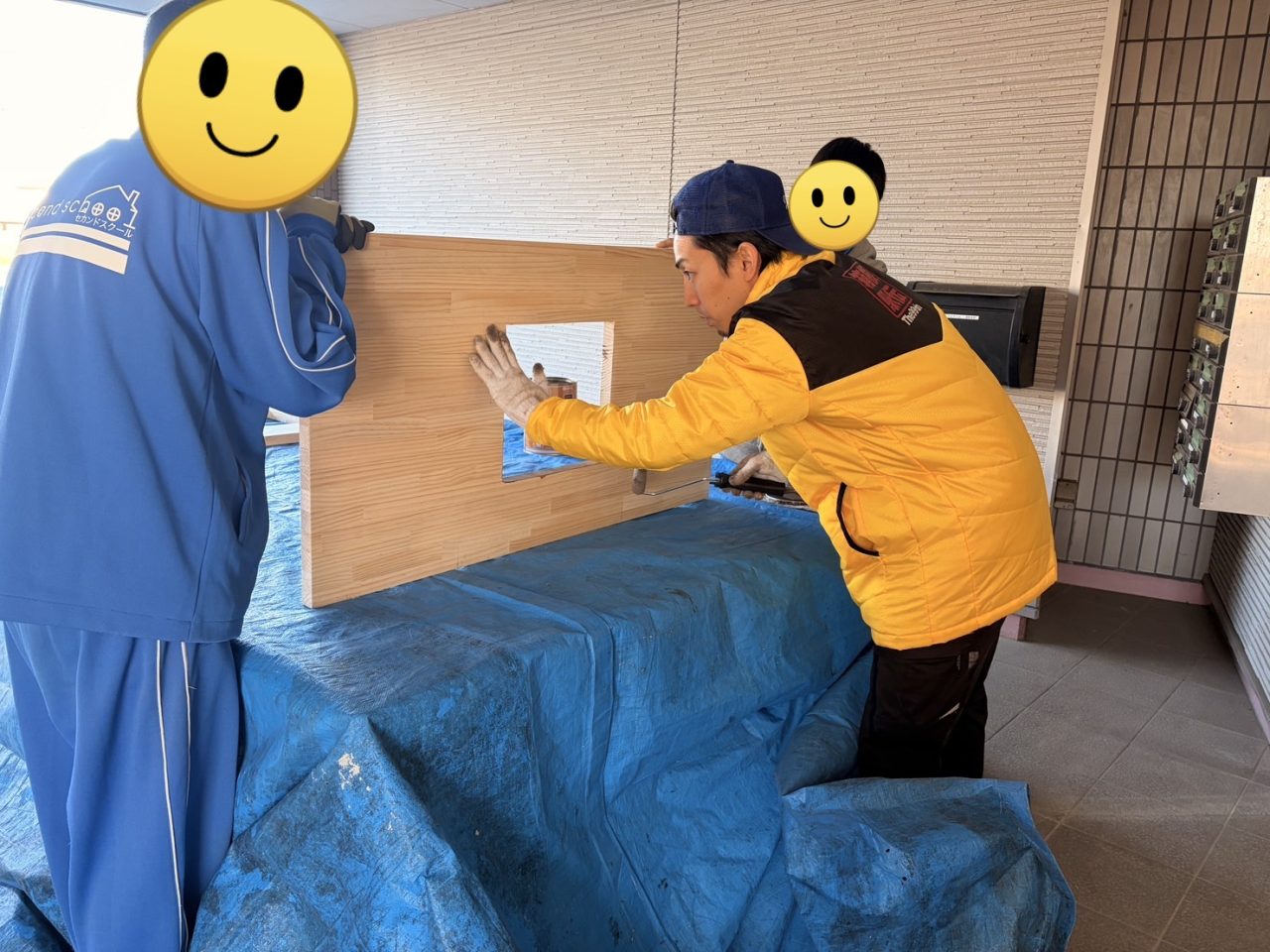 くり抜いた枠の中も塗りながら端っこのところは筆で塗布していきます。