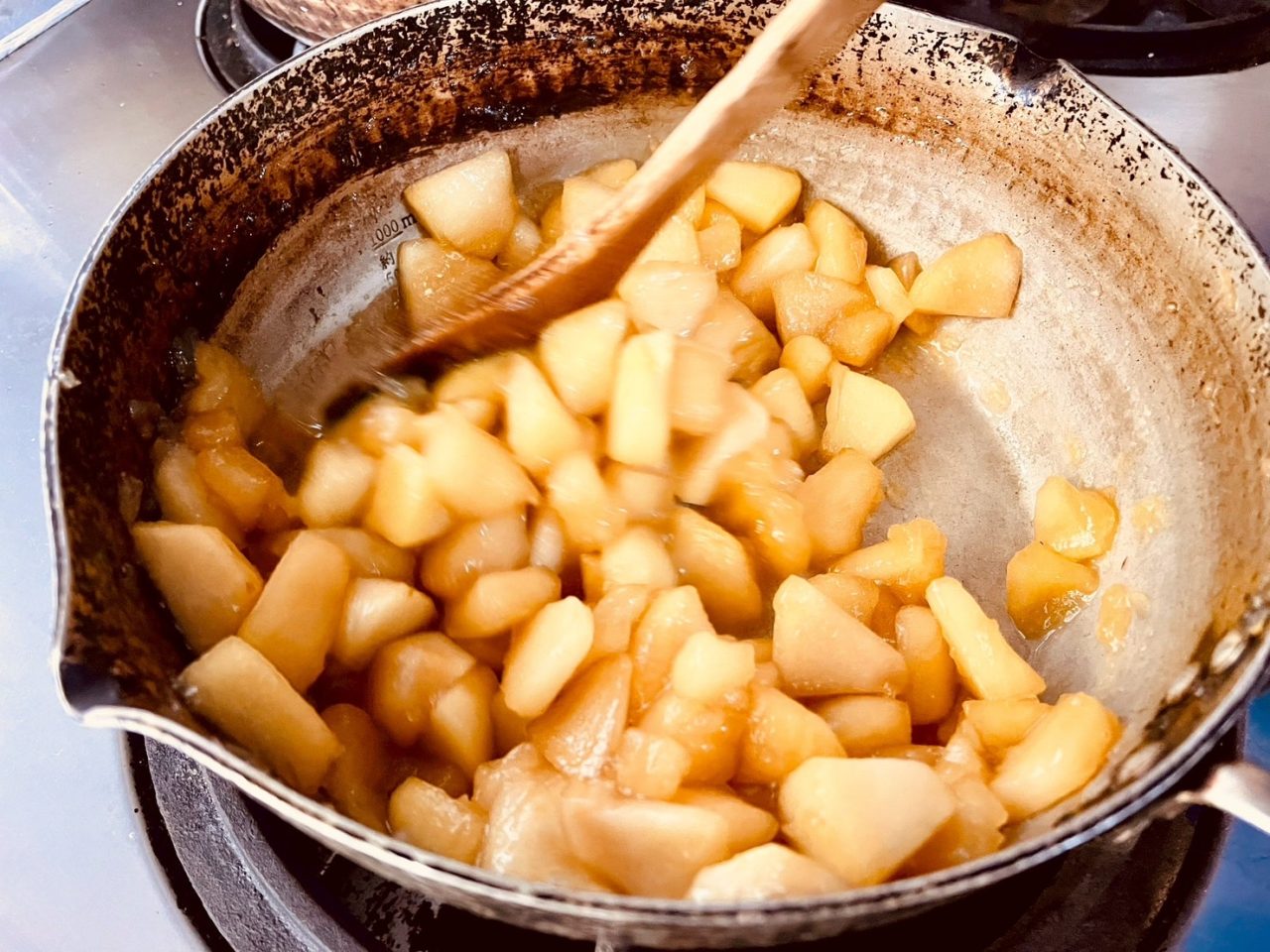 こちらも頂いたリンゴを炒めてリンゴジャムを作りました。