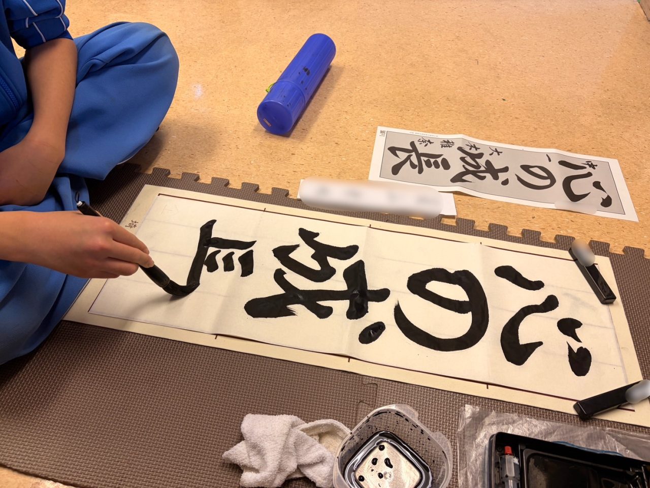 しっかり姿勢を整え精神統一させて文字を書いていきます。