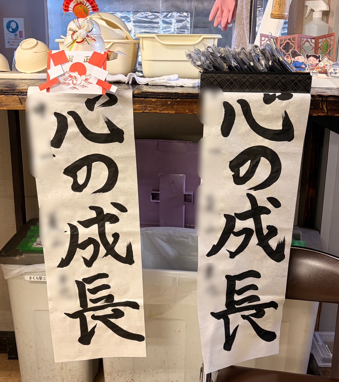そして、この日はゴリラが冬休みの課題の書き初めをしていました。
