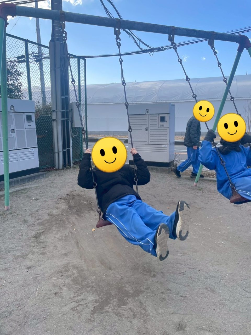 早速ブランコへ向かう生徒たち。
