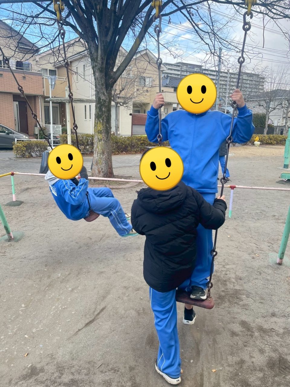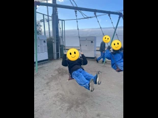 ブランコに乗るとやりたくなるどちらが高く漕げるか対決です。