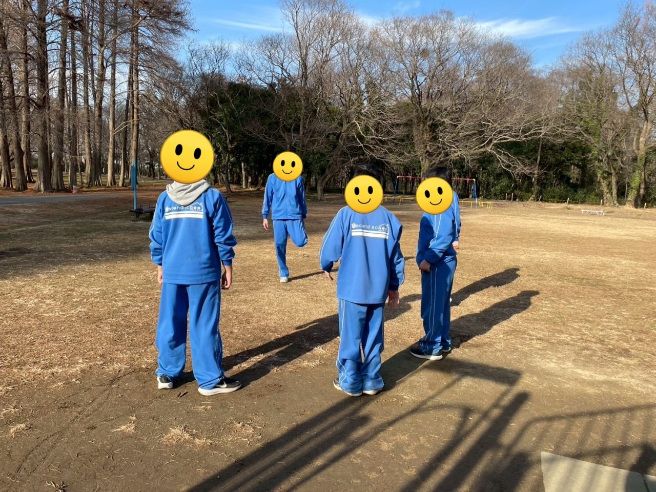 最近は、初めにみんなでグラウンドを走ってからドッチボールをします。